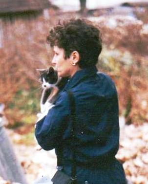 Sam with Dudley, taken when she met Mom and me at Woodbury to retrieve Dudley after I had kept him awhile.