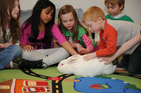 Kids with rabbit