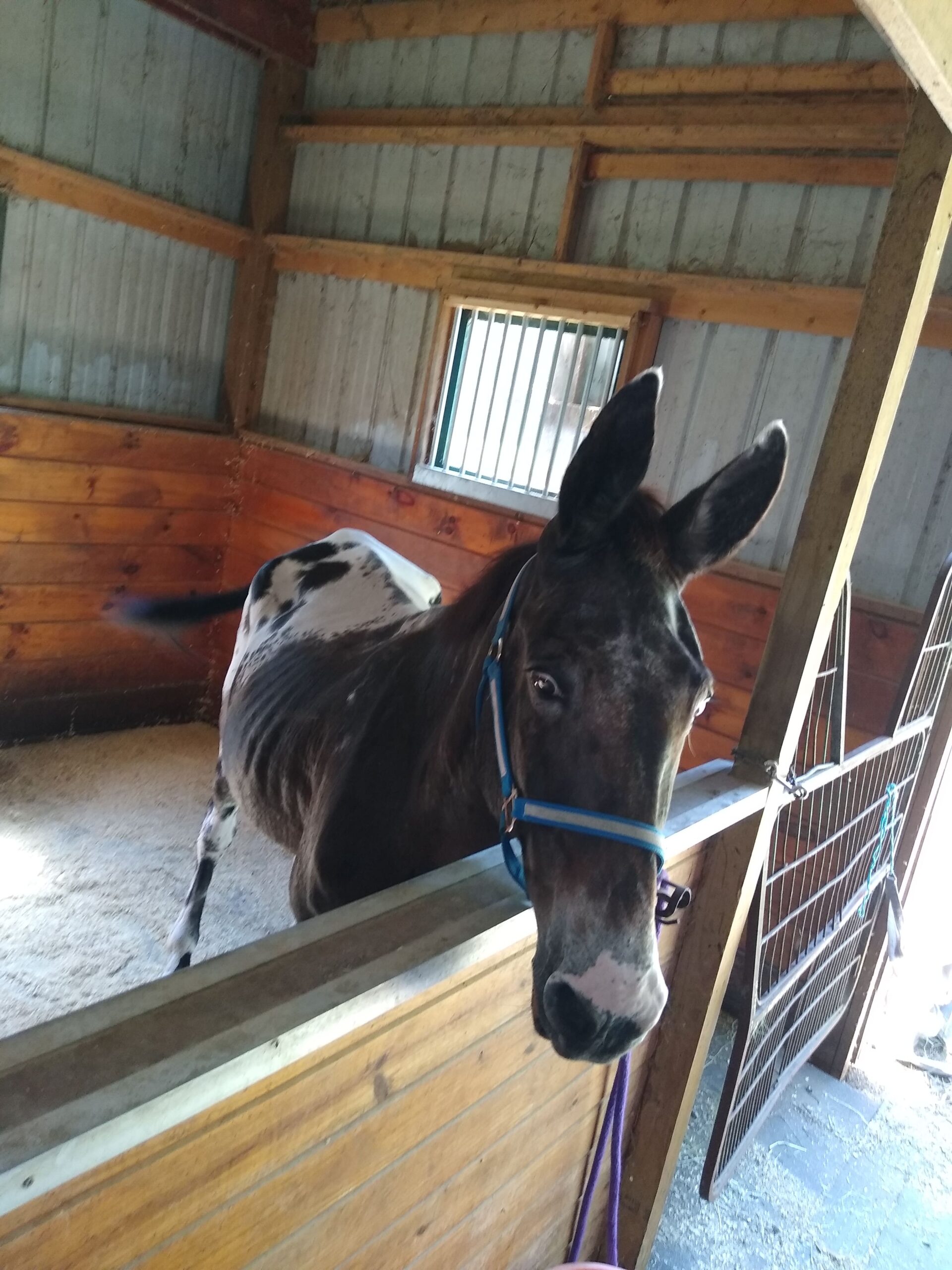 Randy on arrival to Equine Rescue Resource (ERR), with visibly prominent spine and ribs.