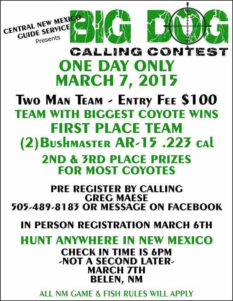 Advertisement for New Mexico coyote hunt. First prize to biggest coyote.